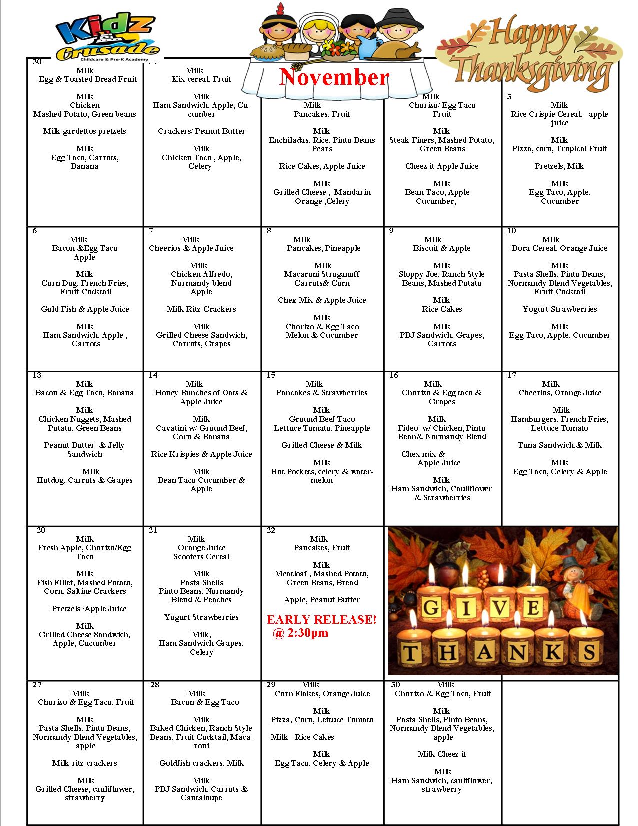 Monthly Menu